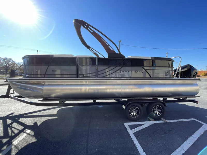 2025 South Bay S224RS ARCH, F200LB S224RS 3.0 Performance Package Boat Presenting the superiorly designed F200LB S224RS 3.0 Performance Package Boat , complete with exceptional improvements for an unparalleled boating experience. Boat Specifications The boat comes equipped with 25" Tubes Full Center Tube , Aluminum Underdeck , and Large Lifting Strakes on both the center tube and the inside of the outer tubes. It also features the Seastar Hydraulic Steering for smooth navigation and a generous 37 Gallon Fuel Tank . Design and Interior Designed with precision, the boat sports an elegant Silver Rail Std . The panels are creatively crafted with Panel 1 featuring a Black Onyx color, and Panel 2 decorated in Slate . It comes with a classy Smoke TT furniture base and a complementary furniture accent in Black Onyx . The boat also includes a standard 20" Shaft Transom . For additional storage, the boat has spacious In-Floor Storage measuring 24"W 79"L. The flooring is a stylish Titanium Standard . Additional Features Among other features, the boat includes a Power Electric Bimini Top Standard and a Mooring Cover in coal. It is covered by a beautifully crafted Black Canvas . This boat is powered by a Yamaha engine with advanced Power Assist Steering Pump and Yamaha Mechanical Pre-Rig . To assist in navigation, the boat features a Lowrance Hook 5 Display . For comfort and relaxation, the boat includes a High Back Captain's Chair , a High Back Port Side Chair , and an HD Folding Table . The boat also features RGB LED Floor, Table & Seat Base Lights and LED Docking Lights for visibility and ambiance. Finally, this boat is also equipped with SS Pop Up Cleats (Qty 4) and a SS Ski Tow Bar Standard for your water entertainment needs.
