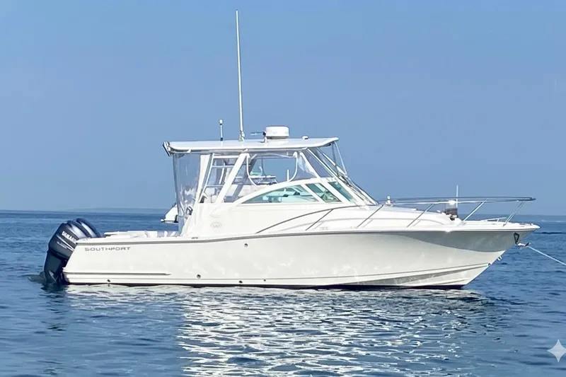 NEW LISTING! This is a 2008 Southport 28' Express Cabin Boat with twin 2019 Yamaha F300XCA Engines. This boat was Sold and has been Serviced by Boats Inc. since new and has only 313 operating hours on the engines. This Express Cabin boat is a great platform for offshore fishing while providing comfortable amenities for cruising. Electronics include a Raymarine E125 Hybrid Touch MFD, Raymarine 2KW Color Radar, Raymarine Autopilot, ICOM 504 VHF, Stereo/CD with 4 Speakers, and Sirius Satellite Radio. Options include Air Conditioning, Hardtop Front & Side Curtains, Hardtop Drop Curtain, Hardtop Outriggers, Transom Bench Seat, Transom Rocket Launcher, Stainless Boarding Ladder, Steering Knob Upgrade, Custom Bow Cushions and more. We are using actual and file photos to represent while in shrink wrap for the winter. We are Open 6 Days A Week for your convenience, so call or stop by today.