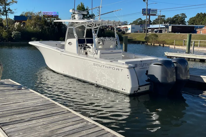 2018 33FE Southport Center Console powered by a pair of Yamaha F-300's w/electronic shift and featuring Seastar's Optimus360 Joystick Docking Assist.