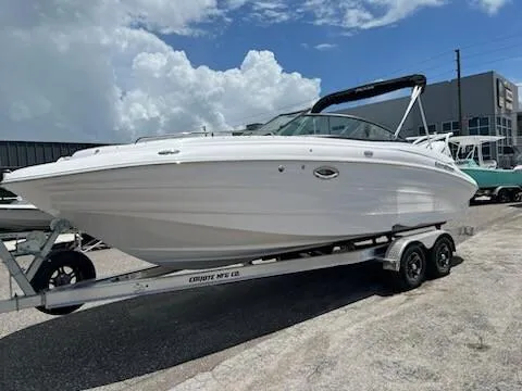 2025 Southwind 2600 SD, The 2025 Southwind 2600 SD is a luxury SportDeck boat designed for premium performance and comfort on the water. With its spacious layout, it offers ample seating for family and friends, featuring plush upholstery and a high-quality finish. The 2600 SD boasts a well-equipped helm with modern controls and technology, ensuring a smooth and enjoyable driving experience. This model is designed with durability in mind, using high-grade materials and construction techniques to withstand various water conditions. It includes a powerful engine option for confident performance and efficient cruising. Additional amenities often found on the 2025 Southwind 2600 SD include a built-in entertainment system, a wet bar, and plenty of storage space for all your gear. Overall, it's an ideal choice for those seeking a blend of luxury, functionality, and performance in a SportDeck boat. Yamaha F300XSB2 Trim Tabs Portable head with deck pump-out Garmin GPSMAP 743xsv 7 screen with AIRMAR B60 Transducer Docking lights Stereo with Bluetooth with 4 Wet Sounds speakers and 1000w Amplifier