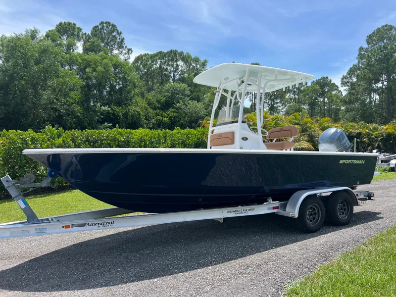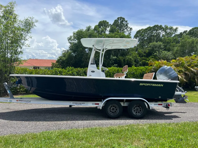 Clean 2013 Sportsman 227 Masters with a Yamaha F-150 with 690 hrs, sitting on a 2013 AmeraTrail Aluminum trailer.