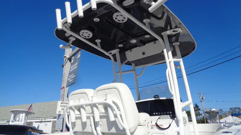 Electronics, Console & Helm SportLink® Electronics Integration System Garmin GPSMAP® 942xs MFD 9" JL Audio MediaMaster® MM50 Premium Marine Stereo (4) JL Audio M3-650X Gloss White Sport Grille Speakers Airmar B60 Thru-Hull Transducer Console Grab Rail Console Windscreen Dash Panel Cover Dual Battery Configuration w/ Switch & Trays Fiberglass Console Footrest w/ Storage Horn Hydraulic Tilt Steering Interior LED Lighting Package Lockable Console Storage Rub Rail Navigation Lights Stainless Steel Switches USB & 12V In-Dash Charging Plugs USB Audio Plug in Footrest Seating, Upholstery & Pads Bow Cushion Set w/ Bolsters Cockpit Bolsters Deluxe Leaning Post w/ Flip Up Bolsters Premium SoftTouch Textured Marine Vinyl or White Rear Fold Down Seat w/ Access Removable Bow Backrest Livewells, Pumps & Storage 25 Gallon Livewell Anchor Storage High Speed Livewell Pick Up Insulated Bow Storage Raw Water Washdown Hull & Deck SportTech® Advanced Fabrication Process 10-Year Hull Warranty 4 Flush Mount Gunwale Rod Holders 64 Gallon Fuel Tank w/ Fuel Level Sensor Advanced Fiberglass Stringer System (No Wood) All White Hull (Sides & Bottom) Built-In Swim Platform w/ 3-Step Ladder Grip Tex Yacht Style Non-Skid NMMA Certified Port and Starboard Toe Rail Pull-Up Cleats Recessed Bow Hand Rails Self Bailing Cockpit Stainless Steel Cup Holders - 8 Stainless Steel Drain Covers Stainless Steel Propeller Stainless Steel Rub Rail Stainless Steel Steering Wheel w/ Knob Under Gunwale Rod Racks Underlid Gaskets