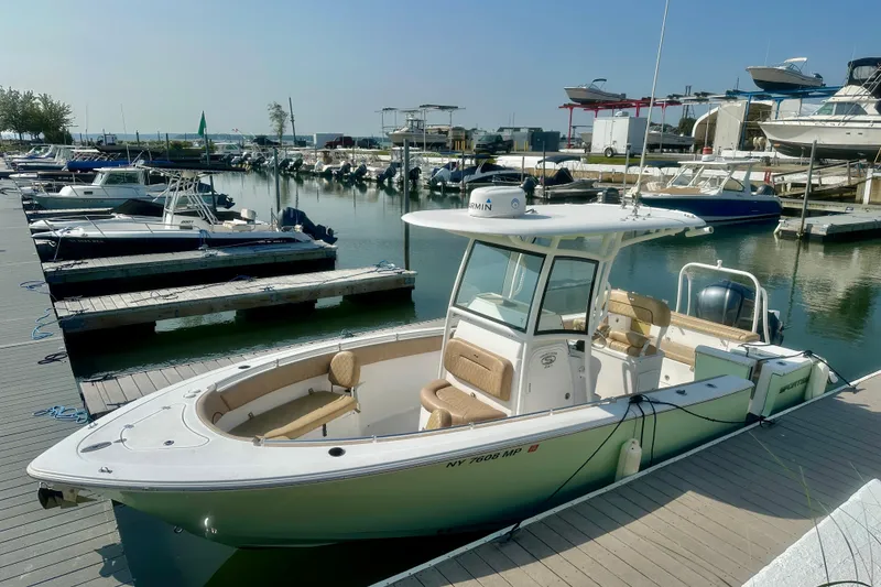 2020 Sportsman 251 Heritage Powered By A Yamaha F300 Outboard With Only 62 Engine Hours. Nicely Equipped With A Fiberglass Color Matched T-Top With LED Lighting And Stereo Speakers, Hard Top Mounted Rod Holders, Including 2 Side Mounted Rod Holders, Stern Livewell, Trim Tabs, Forward Facing Bow Seating, Complete Helm And Lear Bar Covers, Ski Pylon Arch, Anchor Windlass Deck Storage Compartment, Port Side Door, Massive Tackle Storage Center In The Lean Bar, And Touch Screen Garmin Electronics Package.