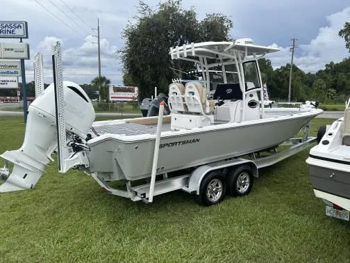 2018 Sportsman Masters 267 - Hybrid Bay and Offshore Fishing BoatThe 2018 Sportsman Masters 267 is a versatile hybrid bay boat that expertly balances fishing performance and family comfort. Perfect for shallow-water anglers or offshore adventures, this 26-foot boat features a wide beam, expansive deck layout, and comfortable seating for family and friends. Built using Sportsman's SportTech Advanced Fabrication Process, the Masters 267 offers durable, no-wood construction for long-lasting reliability.Specifications:Length Overall: 26' 7'Beam: 9' 2'Dry Weight (Approx.): 4,300 lbsFuel Capacity: 116 gal (approx. 105 gal usable)Freshwater Capacity: 25 galMaximum Horsepower: 450 HP (single engine up to 350 HP)Draft (up): 15 inDeadrise at Transom: 16°Key Features of the Sportsman Masters 267:Hybrid Bay/Offshore Design: Wide beam and thoughtful layout make it perfect for shallow flats fishing and comfortable offshore cruising.SportLink Electronics: Integrated helm electronics, including Simrad NSS12 EVO3 12' GPS/fishfinder and premium Infinity or JL Audio stereo system.Fiberglass Hardtop: Standard hardtop with integrated LED lighting, misters, and tempered glass windshield for protection.Versatile Seating: Adjustable helm chairs swivel 180° for 'sandbar mode,' rear fold-up bench seat, and additional bow lounge seating.Fishing Amenities: Dual 21-gallon rear livewells, 35-gallon center livewell, 14-gallon bow livewell, and lockable rod lockers for up to 10 rods.Enclosed Head: Spacious console houses a private porcelain toilet for comfort on longer trips.Generous Storage: Large console interior, under-gunwale rod racks, and rear access hatch for pumps and equipment.Comfort & Convenience: SeaStar hydraulic jack plate, trim tabs with LED indicators, raw water washdown, full SeaDek, and twin Power Poles for shallow water fishing.Offshore-Ready: Equipped with Yamaha F300 4.2L V6 engine, radar, large 3D bow seating, hardtop, tandem axle aluminum trailer with aluminum wheels, and twin captain's chairs.Why Choose the 2018 Sportsman Masters 267?This hybrid bay/offshore fishing boat is perfect for serious anglers, family sandbar outings, and offshore adventures. With premium electronics, versatile fishing features, and durable construction, the Masters 267 remains one of the most capable and family-friendly bay boats on the market.All Homosassa Marine pre-owned boats come with an inspection report available upon request. Call today to schedule a showing of the 2018 Sportsman Masters 267!