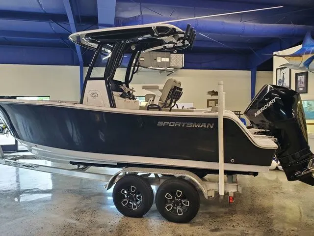 2025 Sportsman Open 212, This boat is powered with a Mercury 200 Four Stroke outboard motor. Boat color is Black with White bottom, Black powder coat and Ash Gray upholstery. Factory installed options include Premium Duel Chair Leaning Post and Trolling Motor Harness. Price includes tandem axle Road King aluminum trailer.