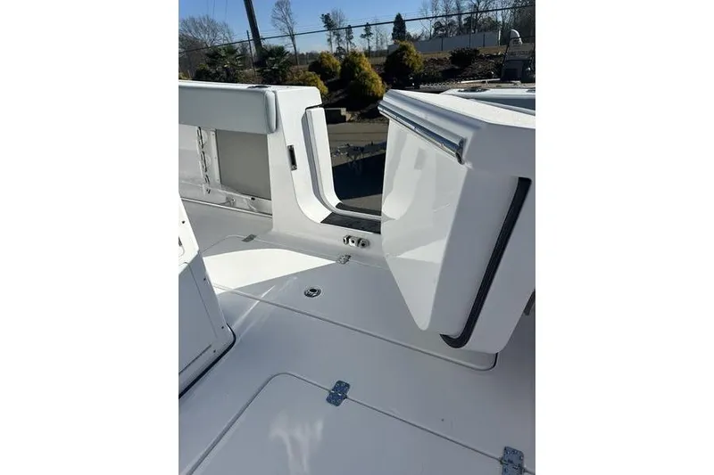 The Open 282 is primed for family fun and comfort for the whole family. Enjoy the versatile dual side entry doors with dual fuel fills, comfortable deep seating throughout and the finely-tuned offshore ride you've come to love from our boats. Just one look at the sleek shear line of this model or the oversized fiberglass hard-top and you'll know you will be ready for whatever lies ahead.