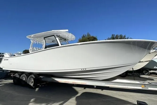 Starting at the transom, 2 30-gallon aquarium livewells with tempered glass windows, dual side entry doors, removable cockpit table, large center cooler and a large flip-up bench seat. Legendary bilge access compartment with a designed-in Seakeeper pod. Leaning post features triple captain's chairs, with table storage and rear facing seating. At the helm, a blacked-out command center with up to 2 22" Garmin displays, VHF, top of the line Garmin Fusion Signature speakers and storage. Inside the console, a berth for up to 2 adults and a child, porcelain toilet, sink and plenty of storage. Console front, a sculpted seat for 2 with a 65 qt. cooler. At the bow, wrap-around seating with electronically actuated table, under gunwale storage, comfortable deep seating with backrests and windlass foot controls.