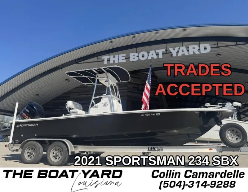 2021 Sportsman 234 SBXYamaha 250 4 StrokeTandem Axle TrailerOFFSITE CALL FOR AVAILABILITY***FINANCING AVAILABLE***Trade Ins Accepted$76,995SPECIFICATIONSLength: 23' 4'Beam: 8' 5'Dry Weight: 2,450 lbsMaximum HP: 250Fuel Capacity: 71 gallonsDraft: 13 inches The Sportsman 234 SBX Bay Boat is the ultimate blend of versatility and performance. Designed for both inshore and offshore adventures, it offers a spacious, well-equipped deck with ample storage and a smooth, dry ride. Featuring cutting-edge technology and a powerful engine, the 234 SBX excels in both shallow waters and open seas. Whether you're fishing, cruising, or enjoying watersports, this boat provides comfort, durability, and style for every outing. Experience the thrill of the water like never before with the Sportsman 234 SBX Bay Boat!(CLICK HERE)Call Collin to schedule a showing! (504) 314-9288