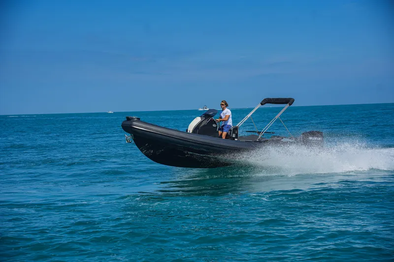 The SPX 25 Dinette is a high-performance RIB designed for a truly exhilarating boating experience. With its 25-foot length and its 250hp Suzuki outboard engine, this boat is built for speed and power.