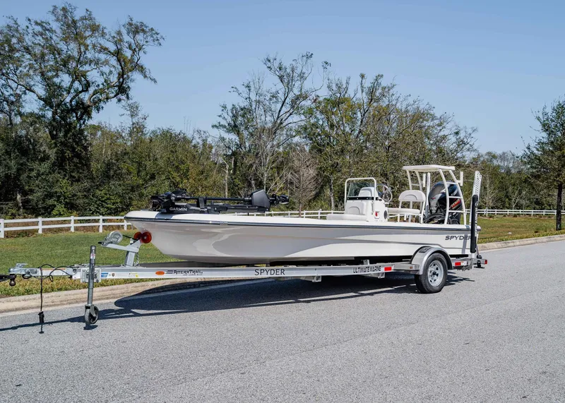 Introducing a pristine 2024 Spyder FX19 Vapor Demo Unit, meticulously maintained and ready to fish. This 19-foot-1-inch shallow water skiff boasts a beam of 83 inches and a draft of just 7 inches, making it ideal for navigating shallow waters with ease. Constructed with hand-laid bi-axial glass and an advanced fiberglass stringer system, it ensures durability without compromising on weight, tipping the scales at approximately 1,020 lbs.