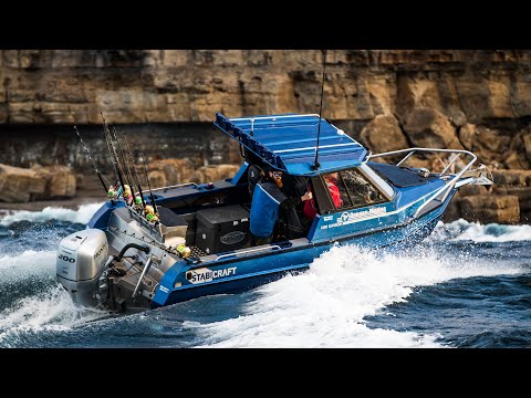 An incredible offshore fishing boat made even better by Sealegs amphibious technology. Stout and seaworthy, this boat can chase fish all day, and comfortably camp out for the night (at the dock or on the beach).