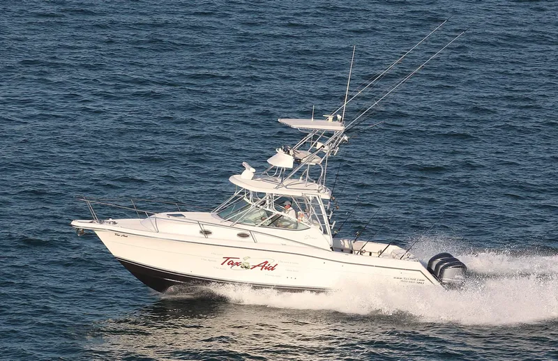 Introducing the Stamas 390 Aegean, a remarkable saltwater fishing vessel from 2015, measuring an impressive 39 feet in overall length. This well-crafted boat features a robust fiberglass hull, designed for durability and performance on the water. Equipped with three powerful Yamaha F300 outboard engines, each delivering 300 horsepower, it ensures exhilarating speeds, reaching a cruising speed of 36.82 mph and a maximum hull speed of 46.03 mph. The Stamas 390 Aegean offers comfortable accommodations, including a cabin and a head, making it perfect for extended fishing trips or leisurely outings. Its thoughtful design incorporates essential features for an enjoyable experience on the water. Whether you're chasing the big catch or simply enjoying a day at sea, the Tax Aid is ready to deliver an unforgettable adventure.