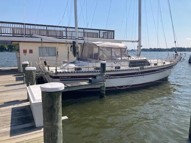 The Stamas 44 is a custom offshore center cockpit designed by Robert Johnson (Island Packet fame). They were built by the Stamas Yachts in Florida. The ketch rig makes sail handling a lot more efficient when the wind pipes up. V berth forward w/ its own head. Aft cabin double with its own head and sit down shower stall. Cockpit has complete enclosure. Unique electric davit system for dinghy.