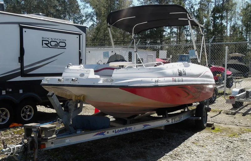 The Starcraft 2000 deck boat is a versatile 20-foot runabout that's great for fishing, family outings, watersports and more. She features ample cushioned seating and a smooth, dry ride thanks to her vee hull. "Sea Ya" also comes with a bimini top and a custom sunbrella fabric mooring cover. She's equipped with a professionally maintained 150hp Mercury outboard and comes complete with a galvanized trailer.