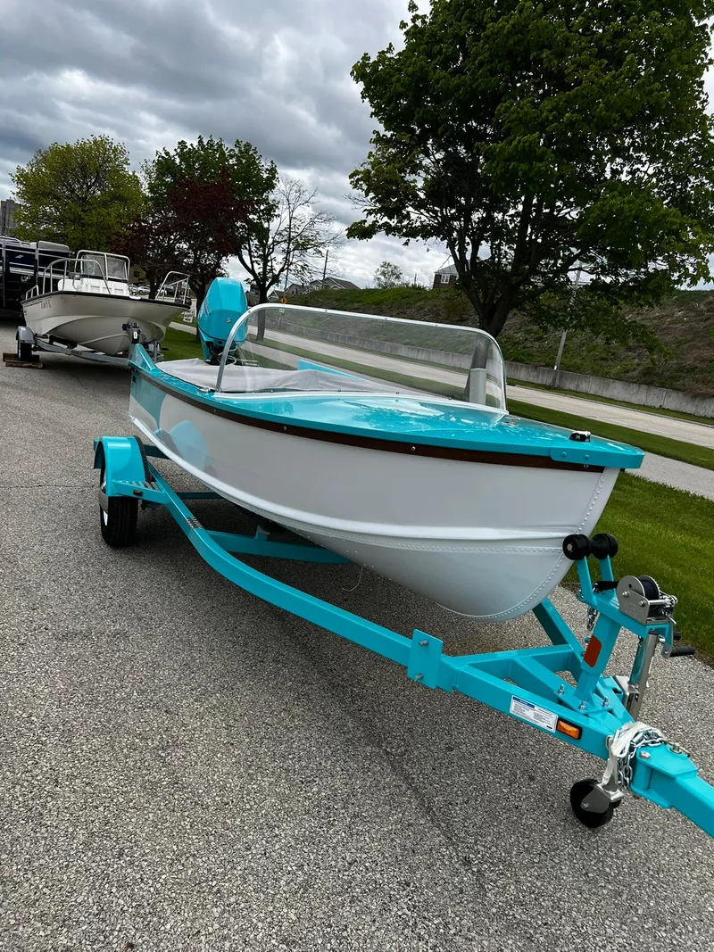 Step back in time with the 2025 Starcraft 57 Ski Champ-a faithful recreation of the iconic 1957 model that pays homage to the golden age of boating. This limited-edition runabout captures the essence of 1950s Americana, featuring sleek lines and distinctive rear fins inspired by the classic 1956 Chevrolet. Its vibrant seafoam and white color scheme, complemented by polished aluminum accents, ensures you'll turn heads whether cruising the lake or docked at the marina.