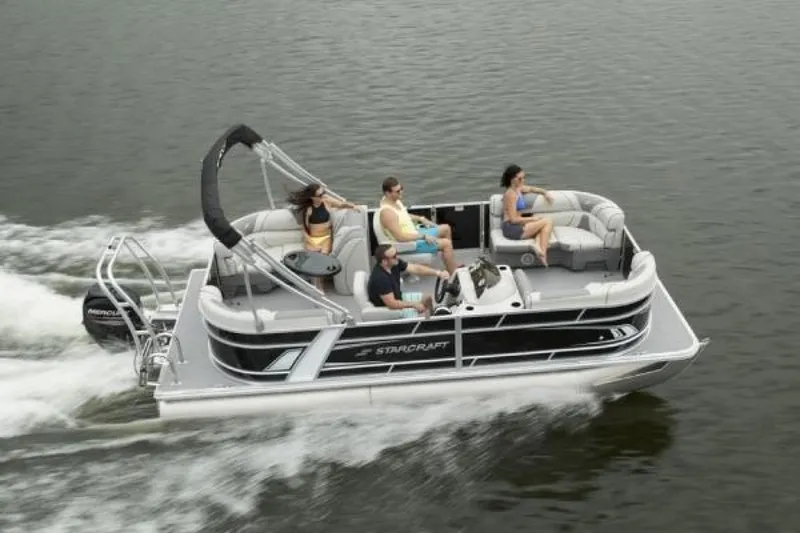 The Starcraft EX 18 is an ultra-comfortable 18'10 pontoon boat with ample seating and several layout options to choose from. Its impressive standard features are sure to entertain a crowd for a day-long adventure, while its many options offered allow for customization.