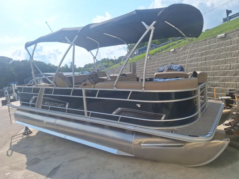 The EX 22 Weekender from Starcraft is a pontoon boat that comes with the camper in mind. A full enclosure camper top, side galley with sink, two bow fishing seats and a stainless steel grill all come standard. Weekender offers all the amenities needed for a day and night out on the lake.