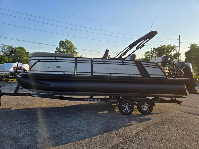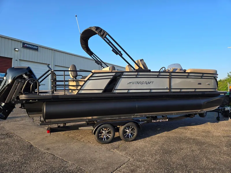 New design for 2026 Starcraft EXS3DL features the dual rear swing back for versitility. Rigged with a Mercury 200 and on a Yacht Club tandem trailer. Comes with a mooring cover, stainless prop, in floor storage, power bimini, Wet sounds stereo and more