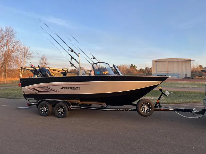 2024 Starcraft Fishmaster 210 packaged with a Yamaha VF250XB SHO, Yamaha 9.9XPB Kicker (with helm controls & Troll Smarter remote speed control), Minnkota Terrova 36 volt 72' US2, ratchet cover, fisherman's top with full enclosure (side, rear curtains and bow cover), Lenco trim tabs, 4 bank charger, dual battery system engine/house with switch, high back helm chair upgrade, Bert's big water pack with rod trees, rod holders, downrigger swivel pedestals (downriggers not included), tool holders, ball cradles, mounted tracks, tandem trailer with brakes, swing-tongue and matching spare rim/tire.;;This is a demo boat that has been on the water a couple times. Save big! This boat is set up nicely and is ready to fish!