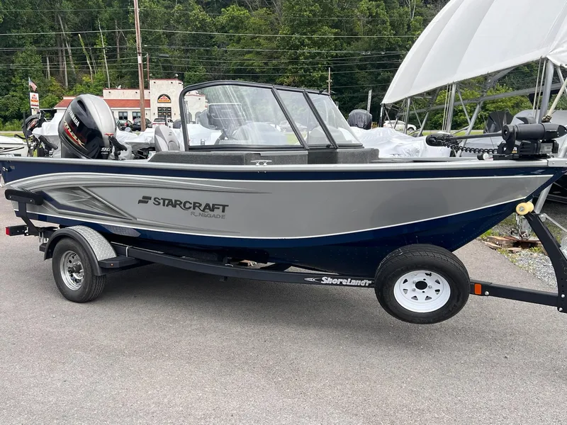 90 hp Yamaha SHO EFI 4-Stroke (94 Hours), Aluminum Prop, 12v 70# Minnkota Powerdrive, 2 Bank Charger, Garmin 7', Flip Rear Bench Seat, 3 Batteries, SS Swim Platform & Ladder, Custom Travel Cover, Shoreland'r Trailer, Spare TireBow and stern livewells, sportscar style dash, deluxe moveable fishing seats, in-floor rod storage. These are just a few of the top-of the line features that come standard in a Starcraft Renegade 168 SC fishing boat, and they all come priced at incredible value.SpecificationsMax Horsepower: 90 hpBeam: 89 in.Dry Weight: 1300 lb.Max Persons: 6Interior Depth: 22 in.Transom Width: 85 in.Bottom Gauge: .100Side Gauge: .080Max Capacity: 900 lb.Fuel Capacity: 22 gal.Length: 16 ft. 10 in.Number of Seats: 2Transom Height: 20 in.Deadrise at Transom: 12 deg.Hull ConstructionLimited Lifetime WarrantyLifetime Warranty on all Double Riveted SeamsDouble Riveted Chine & Transom SeamsTwice Baked Urethane PaintDeck Amenities6 Seat Bases (DC & SC)Deluxe Fishing SeatsDash/ConsoleTachometerSpeedometerVolt MeterFuel GaugeCircuit BreakersMiscellaneousPower PointBuilt-In Fuel TankPressure Treated Floor/ DeckCleats (4)Vinyl Cockpits & Casting PlatformsStorageUnder Console StorageCenter Rod StorageLivewellAerated Bow LivewellAerated Stern Livewell