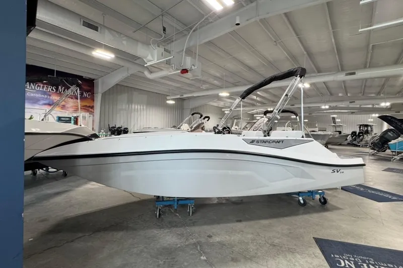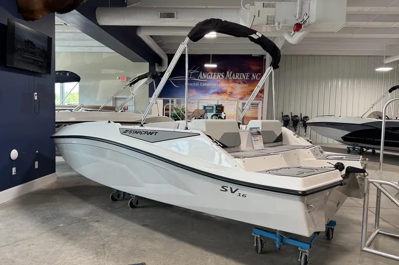 This 2026 Starcraft SV 16 is powered by a Yamaha F70LA 70Hp outboard. The new SV 16 deckboat is a perfect blend of affordability and family friendly features designed to provide maximum enjoyment without breaking the bank. This boat runs smooth with limited horsepower, making it an accessible choice for all boating enthusiasts! It comes standard with Wet Sounds bluetooth stereo, tilt steering, EVA soft touch traction mat, and more! Come by our Supply, NC location or for more information give us a call at (910) 755 7900.