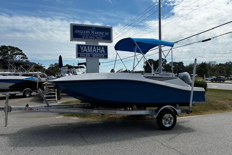 This 2026 Starcraft SV 16 is powered by a Yamaha F70LA 70Hp outboard. The new SV 16 deckboat is a perfect blend of affordability and family friendly features designed to provide maximum enjoyment without breaking the bank. This boat runs smooth with limited horsepower, making it an accessible choice for all boating enthusiasts! It comes standard with Wet Sounds bluetooth stereo, tilt steering, EVA soft touch traction mat, and more! Come by our Clayton, NC location or for more information give us a call at 919-585-7900.