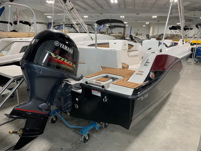 This 2024 Starcraft SVX 171 is powered by a Yamaha VF115. The SVX lineup features seven different models of spacious deck boats that come loaded with value; with a large bimini top for sun protection, and AM/FM stereo system with bluetooth, and EVA soft touch marine flooring at the bow and stern.