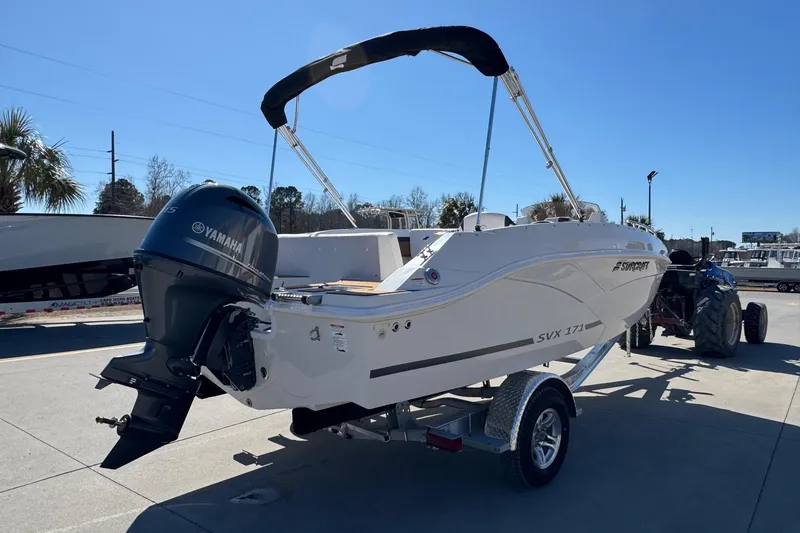 This 2026 Starcraft SVX 171 comes with a Yamaha 115. The SVX lineup features different models of spacious deck boats that come loaded with value; with a large bimini top for sun protection, AM/FM stereo system with bluetooth, and EVA soft touch marine flooring at the bow and stern. Come see this boat at our Supply, NC location or call 910-755-7900 for more information.