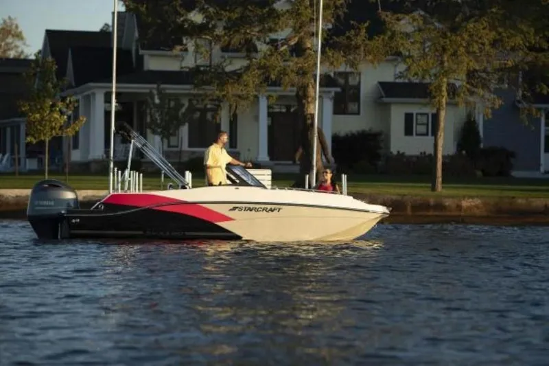 This new 2023 SVX 190 OB Starcraft is powered by a 150hp Yamaha outboard engine. This versatile deck boat provides something for everyone, whether you enjoy cruising, lounging on the sandbar, or participating in water sports.