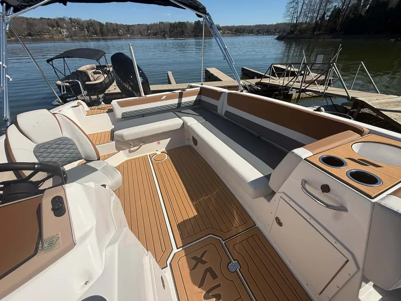 2026 StarCraft SVX 211 – Monochromatic Black – Cognac Interior – Suzuki 150 (200HP Optional)This 2026 StarCraft SVX 211 delivers the perfect blend of style, space, and performance. Finished in a sleek Monochromatic Black hull with a rich Cognac interior, it’s a head-turner on the water and a favorite for families who want comfort, versatility, and reliability.Priced with a Suzuki 150HP four-stroke, with the option to upgrade to a 200HP for even more punch.Key Features- Suzuki 150HP four-stroke (upgradeable to 200HP)- Executive Package- Marine mat flooring throughout- Wetsounds stereo package- Helix 5 GPS / Fish Finder / Depth Finder- Ski tow bar- In-floor ski locker- Swim-up built-in cooler- Seating for 14 passengers- Spacious, family-friendly layout- Premium Cognac upholstery- Monochromatic Black hull for a bold, modern lookCondition & HighlightsBrand-new, loaded with premium options, and designed for all-day fun—cruising, coving, watersports, or just relaxing with friends and family. The SVX 211 is one of the most versatile deck boats in its class, offering a smooth ride, tons of storage, and a layout that keeps everyone comfortable.TrailerPrice is for the boat only.Trailers are available, or delivery can be arranged.