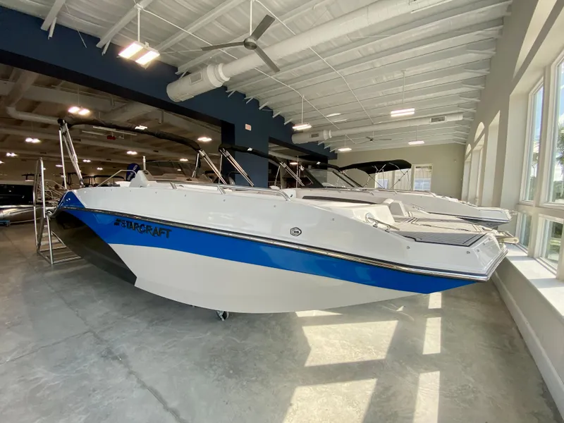 This 2026 Starcraft SVX 211 Sport is powered by a Yamaha F175XA. It's one of the seven different models of spacious deck boats in the SVX fleet. It comes loaded with value, including a large bimini top for sun protection, Hydraulic steering, and EVA soft touch marine flooring. For more information visit our Supply, NC location or call us at (910) 755-7900.
