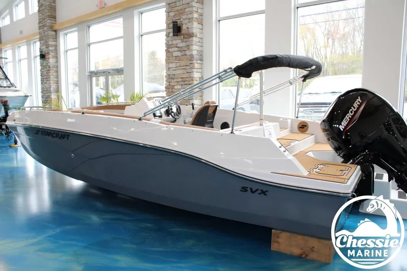 2025 Starcraft SVX 211 OB, Additional Features Mercury 150XL Fourstroke 150HPMercury Mechanical Controls w/EngineHang Engine & Rig ControlsBaystar to Seastar Hydraulic UpgradeCockpit CoverBiminiTrim GaugeEngine-House Dual Battery SystemHelix 5 Chirp DS GPS G3 Flush MountTable & BaseSki PylonExecutive Package Includes: Deluxe Furniture Package, Solid Color Hull, Black Logo and Badge Graphics, Black Rub Rail w/Stainless Steel InsertTrailer