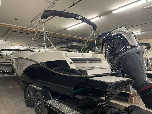 2024 Starcraft SVX 231 OB DH - Quicksilver Elegance on the Water The 2024 SVX 231 OB DH deck boat by Starcraft delivers a perfect blend of luxury, versatility, and performance. Featuring a sleek Quicksilver stripe and a modern Grey interior, this spacious dual-console deck boat is ideal for family outings, watersports, or a relaxing day on the water. Powered by a robust Yamaha VF250XB, this boat ensures smooth, powerful cruising every time. Standard Features: Bimini Top - Stay cool and comfortable with ample shade Tilt Steering - Effortless handling for precise control Bluetooth Stereo - Seamlessly stream your favorite music EvA Soft Touch Traction Mat - Durable and comfortable underfoot Upgraded Options: Yamaha VF250XB Engine - Delivers impressive power for cruising and towing Trailmaster ST2255BBR Trailer - Easy transport with a durable, custom-fit trailer Upgraded Color Package - Striking quicksilver exterior and premium grey interior Fender Holder (Mid-Ship) - Secure storage for quick access to fenders Bow Filler Cushions - Creates a spacious lounging area at the bow Ski Tow Pylon - Perfect for water skiing and wakeboarding SIMRAD GO7 GPS/Fish Finder - Stay on track and explore new waters with ease Premium Sound Package with Rear RGB Speakers - Immersive audio with customizable mood lighting Swim Platform - Easy water access for swimming and water activities Hydraulic Steering Upgrade - Enhanced maneuverability and control Additional Features: Snap-In Marine Mat - Adds a touch of comfort and is easy to clean Pressurized Water System with Transom Shower - Rinse off after a swim or clean up easily Stainless Steel Bimini Top Upgrade - Durable and stylish for maximum sun protection Cockpit Cover - Protects your investment when not in use Docking Lights - Safe docking in low light or nighttime conditions RGB Lighting Kit - Customizable lighting to set the perfect mood Dual Battery System - Reliable power for long days on the water The 2024 Starcraft SVX 231 OB DH offers all the premium features you need for an unforgettable day on the water. Whether you're cruising, towing, or relaxing, this beautifully designed deck boat delivers unmatched comfort and performance. With the included Trailmaster trailer, you're ready to hit the water in style. Don't miss out on this fully-loaded beauty-contact us today to make it yours!