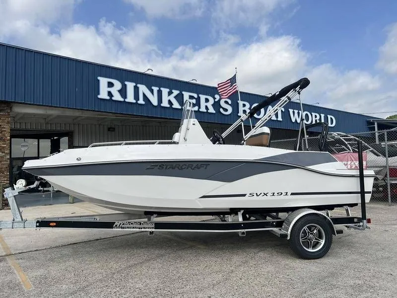 2024 Starcraft Marine SVX OB 191 CC, 2024 Starcraft Marine SVX OB 191 CC w/ Trailer(Center Console, Towne Lake Approved) LOADED VALUE The SVX series proves that fun on the water doesn't have to come with a big price tag. SVX CC's comes loaded with value, including a spacious head unit, a bimini top for sun protection and EVA Soft Touch Traction Mat flooring in the bow and stern-all standard. Features include: HULL CONSTRUCTION Lifetime Hull Warranty 6-Year Blister Warranty 24 oz. Woven Roving Fiberglass with 6-inch Overlap Reverse Chine Hull Marine-grade UV Stable Upholstery Vinyl COCKPIT 750 GPH Easy-service Cartridge Automatic Bilge Pump Premium Helm Seat Flip-up Bolster 4 Mooring Cleats In-floor Storage DASH Tachometer Speedometer Fuel Gauge Volt Gauge ELECTRICAL AM/FM Stereo w/ Bluetooth Courtesy Lights CANVAS Bimini Top and Storage Boot STEERING Tilt Steering FLOORING Stern EvA Soft Touch Traction Mat Bow EvA Soft Touch Traction Mat MISCELLANEOUS Bow Platform with Boarding Ladder Ski Tow Eye