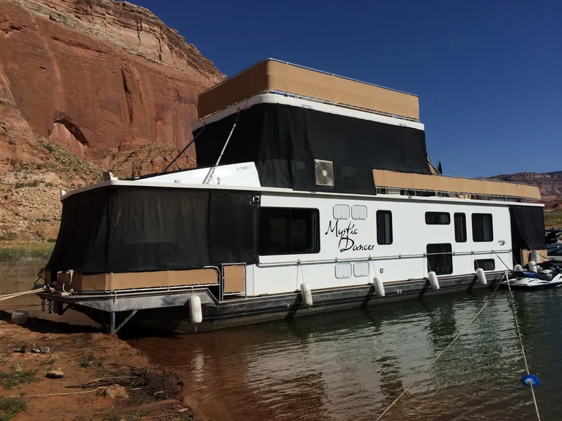 The boat is a 1996 Stardust Cruiser and measures 60 feet long with many modern upgrades. The boat summers in the waters of Wahweap, Lake Powell. Here is a list of features.