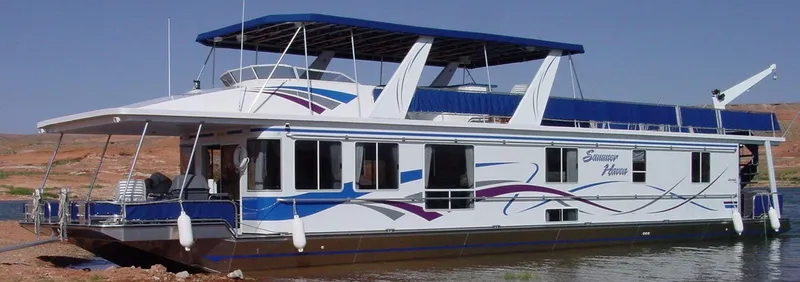 Summer Haven is a 75'X16', 2003 Stardust Cruiser located at Antelope Point Marina. Annual maintenance fees are $2,500.
