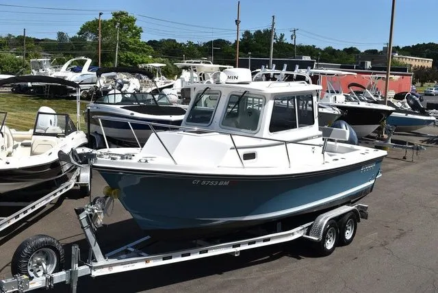 2019 Steiger Craft 21 DV Miami. The 21 Deep V Miami delivers classic lines, aggressive performance, maneuverability and a massive cockpit (50sq. ft.) for a boat of this size. Weighing 1,000 lbs. more than it's nearest competitor, without sacrificing performance and efficiency, makes the 21 Miami ideal for fishing rough water or for family fun. The 21 Miami is built with the same tried-and-true construction methods that have been proven time and time again, making Steiger Crafts the best built boats on the water. The Miami features hand laid fiberglass construction coupled with an exclusive I-Beam grid system technology, offering durability and a rigid structure that can withstand any sea conditions. Some key features that set this 21 apart from other boats its size are the, Pilothouse helm enclosure (good for 3 full seasons of fishing), Sleeps two, Porta potti toilet, New Garmin 1243xsv GPS/Fishfinder, Radar, Fusion Stereo w/ 4 speakers, Shore power w/ cord, Insignia Fire TV in cabin, Cooler under steering wheel, (2) Step boxes in cockpit, extra rodholders in gunnel, Dual battery w/ switch, Bow filler cushion, Fishbox in floor, 40 Gallon livewell, opening front windows, roll-up backdrop, Armstrong 4-stroke motor bracket, a couch that seats three comfortably, original owner's bag with all manuals and more. Please contact us with any questions or concerns by email or phone at 203 466-5384 and ask for Mark or Karl.