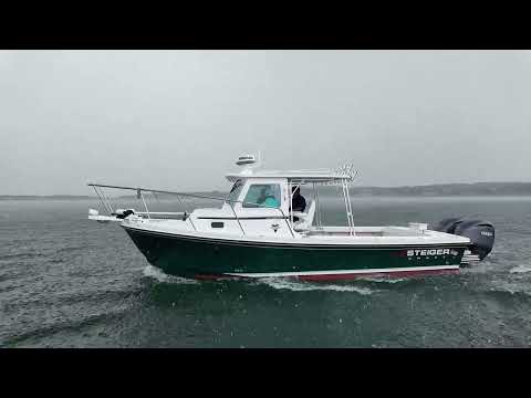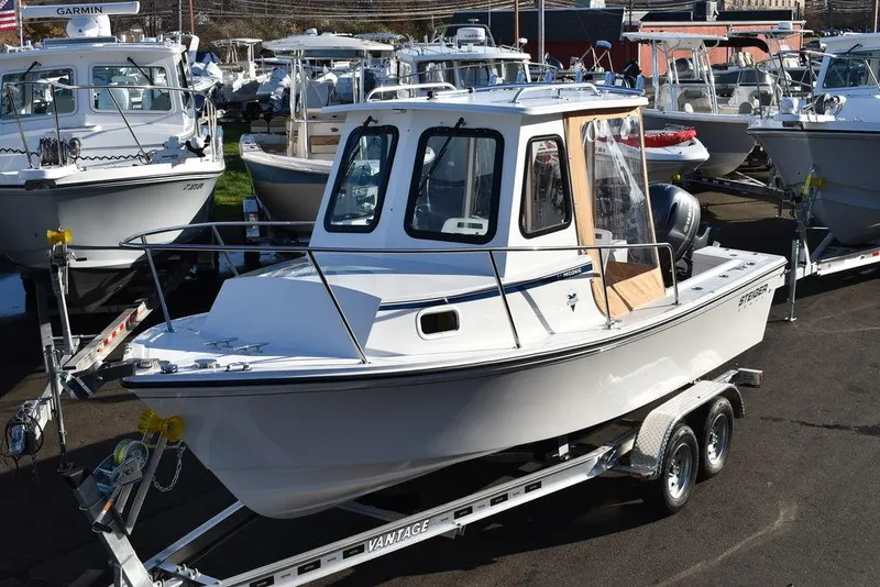 In-stock, for sale by Diamond Marine of Connecticut, a 2025 Steiger Craft 21 Peconic, pilothouse fishing boat, powered by a Yamaha 115hp 4stroke outboard. The Peconic is the smallest pilothouse that Steiger builds at 21ft and an 8ft beam. This one was ordered with the following optional equipment- 3 sided pilothouse enclosure, Dual batteries w/ switch, Raw water washdown, 6 Rod rocket launcher on hardtop, Two additional rodholders, Transom mounted swim platform w/ ladder, Stainless steel pulpit. Financing available, local trades are welcome. Call for more details and ask for Mark or Karl. Email works too, mark.