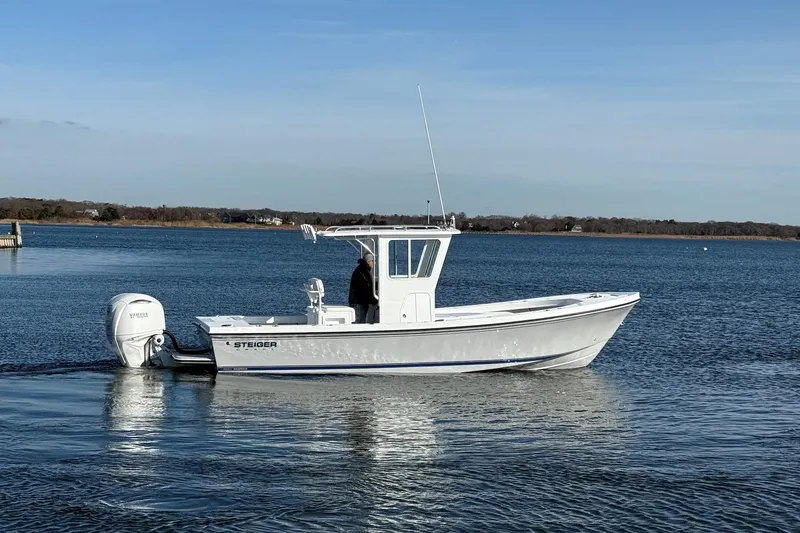 Steiger Craft has launched the 255 Chatham. This new Center Console model features a dog house style console and windshield enclosure and is available with a large forward fishbox/ coffin box on the front of the console. SeaKeeper Ride trim tab system is standard on this boat.