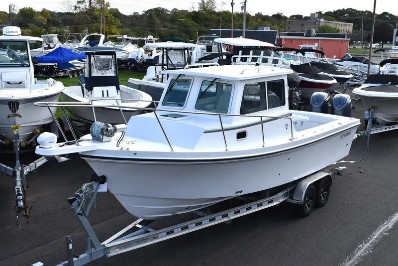 Just arrived, 2026 Steiger Craft 255 Chesapeake (lockable back door) pilothouse boat in white. Yamaha Twin 200hp Digital controls and steering. Loaded with options. Local trades welcome, financing available. Sea trials available once boat on contract. Boat is on site at Diamond Marine, 650 Coe ave, East Haven CT. Call for details 203 466-5384