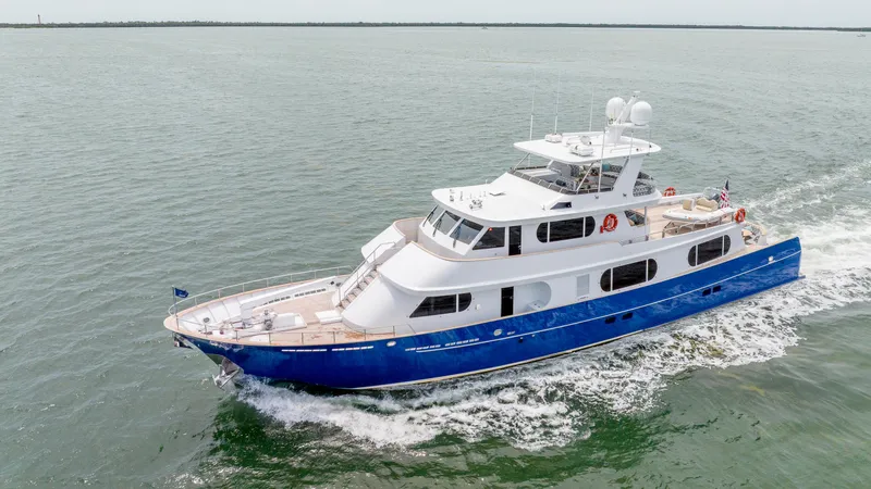 Subsequent refits occurred in 2008, 2013/14, including upgrades to mechanical, electrical, running gear, furniture, and interiors. The hard top on the flybridge was installed in 2013. She again had a complete interior refit in 2020/2022, as well as major systems refit in 2022/25.