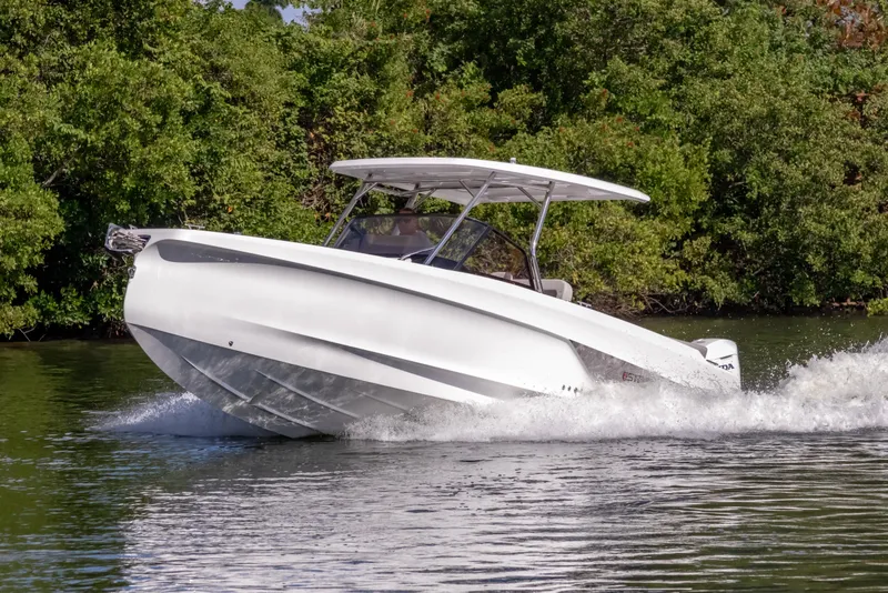 The STERK 31 is a 9.7 m performance boat crafted with passion, featuring modern Mediterranean design, bold lines, and a focus on pure driving pleasure.