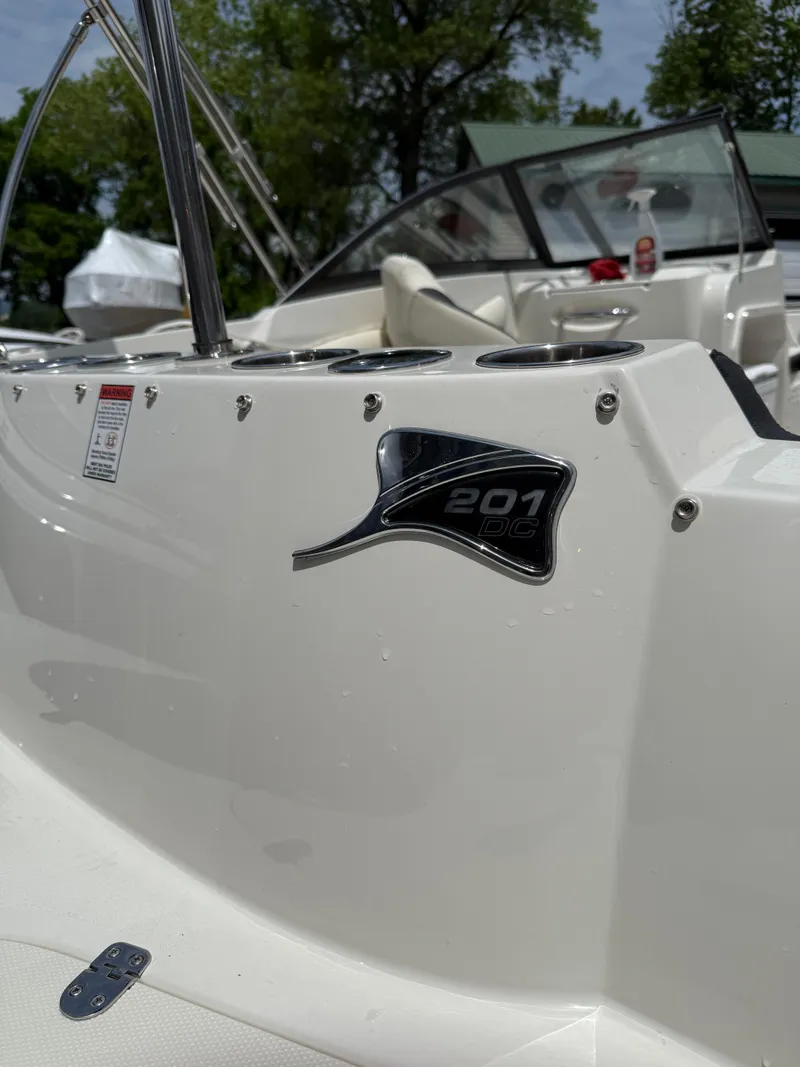 If you love the open feel of a deck boat, but like your boat to have a full windshield, you shouldn't have to choose. The 201DC Dual Console gives you all the interior room and storage space of our 192SC and the added full wrap-around windshield provides a nice shield from the wind while underway. This version gives you two sport bucket seats with bolsters. Deep cockpit and bow areas provide extra safety and security for your passengers. Behind the captain is a solid-surface countertop with a sink and faucet. A mix of dual console deck boat and traditional runabout seating works together to give you a roomy boat with seating for up to 10 passengers.