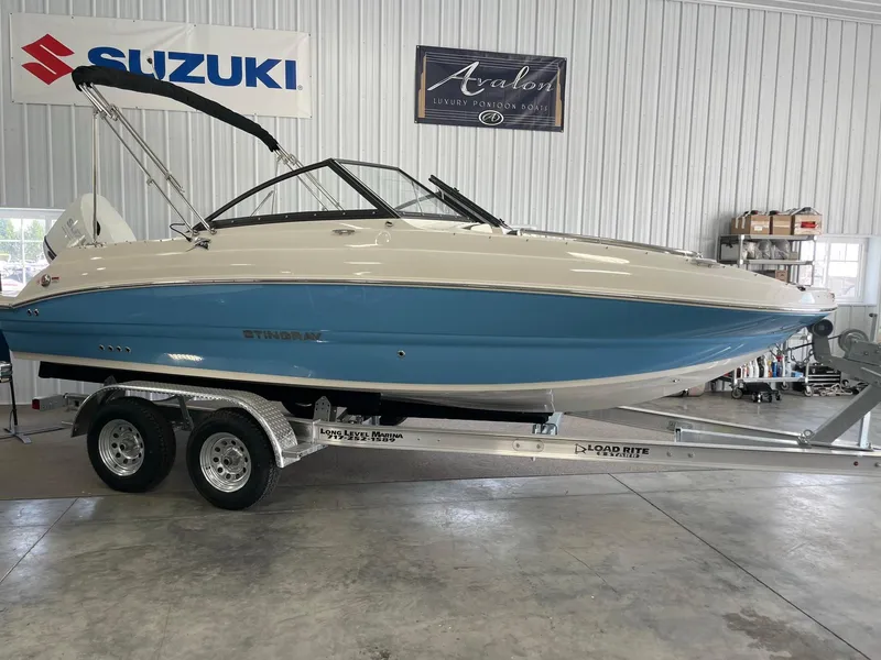 Brand New 2024 Stingray 201 DC. It is powered by a White Suzuki 140 Outboard. It has options that include full color band in Sky Blue, Removable stainless Steel Ski pole, hydraulic steering, flip up bolster seats, rear livewell, in floor ski locker, fusion stereo, cooler, table, front anchor locker/loading ladder, and more! It also comes with a dual axle aluminum trailer. Price includes boat, motor, trailer, all freight and prep and a full commissioning on the water. give us a call today to discuss this boat!