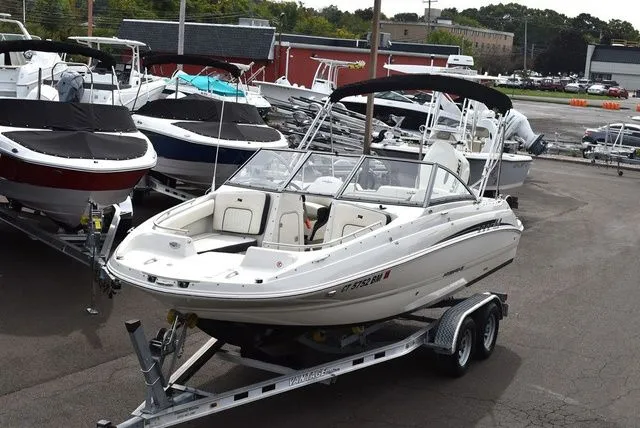 If you love the open feel of a deck boat, but like your boat to have a full windshield, you shouldn't have to choose. The 201DS Deck Boat gives you all the interior room and storage space and the added full wrap-around windshield provides a nice shield from the wind while underway. This version gives you two sport bucket seats with bolsters. Deep cockpit and bow areas provide extra safety and security for your passengers. Behind the captain is a solid-surface countertop with a sink and faucet. A mix of dual console deck boat and traditional runabout seating works together to give you a roomy boat with seating for up to 10 passengers.