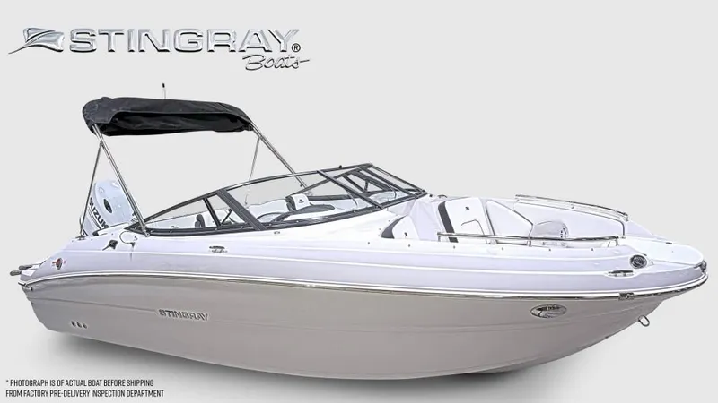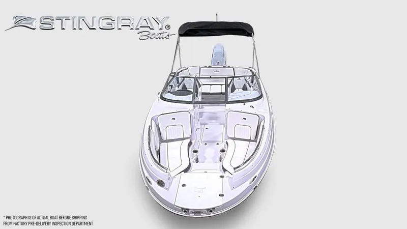 Hit the water in style with the Stingray 211DC, a dual console day boat designed for all-day fun. This boat is a perfect match for those who love to get out on the water with a group of friends or family, as it's built to hold a party of up to 12 people. Whether you're cruising or just relaxing, the self-bailing cockpit and stain-resistant vinyl make cleanup a breeze. You can easily set up the removable cockpit table for a snack break or a card game. The bow and cockpit cover keep everything looking sharp when you're not on the water. With its unique Z-Plane Hull, the boat provides a smooth ride. A built-in cooler and oversized cup holders ensure refreshments are always within reach. A stainless-steel multi-step aft ladder makes getting back on board after a swim easy. Plus, the Fusion RA-60 Stereo with Bluetooth and app control lets you be the DJ for the day. This boat is all about making your time on the water an unforgettable experience.