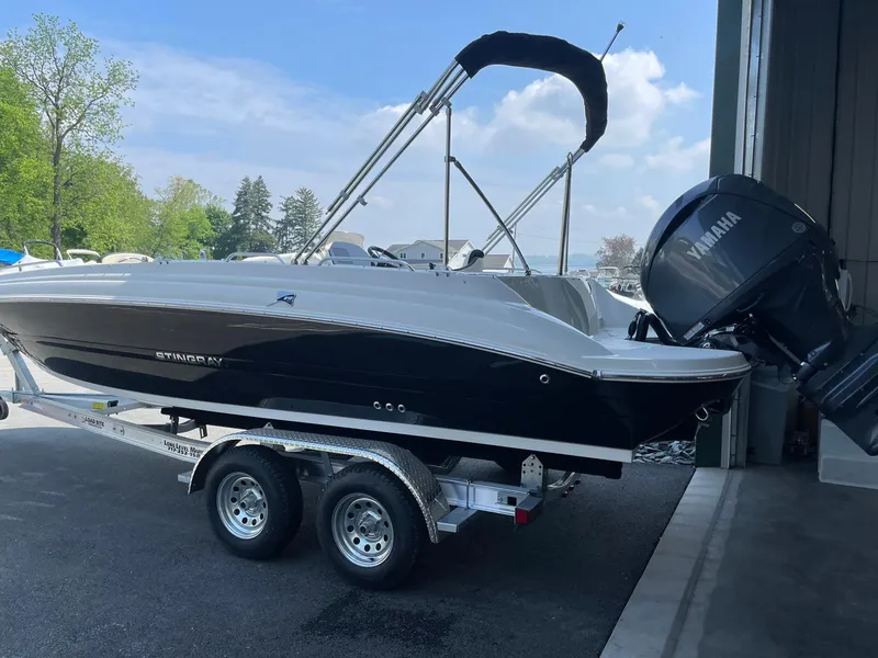2024 Stingray 212 SC. This boat is equipped with everything and ready to hit the water. It is powered by a Yamaha 150 outboard with a stainless steel prop. Options on this boat include dual battery system, full color band in black, pressurized water w/ bow and transom shower, removable stainless steel ski pole, hydraulic steering, cooler, trash can in port side box, porta pot, rear livewell, bimini top, bow and cockpit covers, and more. It also comes with a dual axle aluminum trailer as well. Price is for boat, motor, trailer, all freight and prep, and a full commissioning on the water. give us a call today to discuss this boat!