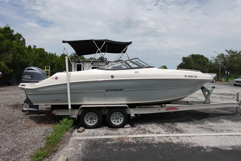 Trailer is a 2023 Ace Aluminum float on trailer custom fitted for this 2022 Stingray 231DC, double axles with disc brakes, LED lights, SS hardware, guide poles, diamond plate step on fenders. Available for an additional $5000.00.