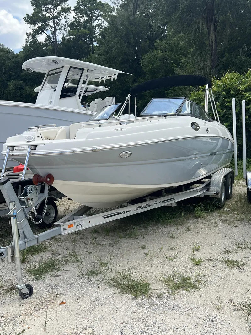 NEW BOAT, NEVER TITLED! Options Include DASH FACE YAMAHA + GARMIN, WALK THRU FLAP (SUNBRELLA), COCKPIT AND BOW COVER, BATTERY SWITCH, PORTA-POTTI W/ DOCKSIDE PUMP OUT, PRESSURIZED WATER W/ BOW & TRANSOM SHOWER, DUAL BUCKET SEATS W/ BOLSTER, ADJUSTABLE PEDESTALS FOR 2 BUCKET SEATS, FILLER CUSHION BOW, LED DOCKING LIGHTS, HYDRAULIC TILT STEERING, STAINLESS STEEL SKI POLE, YAMAHA COMMAND LINK GUAGES, GARMIN 743 & TRANSDUCER, COCKPIT TABLE W/ SIDE MOUNTS and STAINLESS STEEL HARDWARE PACKAGE. ENGINE IS YAMAHA F200XB*PRICE ABOVE DOES NOT INCLUDE PREP/FREIGHT OR TRAILER!*The 231DC is a delightful dual console dayboat that has sumptuous comfort, exceptional versatility and thrilling performance in a sporty yet elegant design. The wide, sport deck design creates plenty of interior space, a convenient side-entry walkway, it has a large bow and aft seating with filler options, a sink and a head compartment large enough to double as a changing room. Add the optional custom STINGRAY wakeboard tower and you're ready for some watersports action! We will see you on the water!