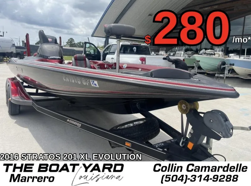 2016 Stratos 201 XL Evolution Mercury 250 Pro XS (255 Hours) Tandem Axle Trailer $29,995 ***FINANCING AVAILABLE*** Trade Ins Accepted SPECIFICATIONS Beam: 8 ft. 2 in. Fuel tank capacity: 46 Max load: 1400 Standard features: MEASUREMENTS Length (feet) 20.75 Length Overall 20 ft. 9 in. Beam 96 in. without rubrail 97.5 in. with rubrail Depth 22 in. Weight 1,800 lbs. single console Contact Collin for more info 504-314-9288